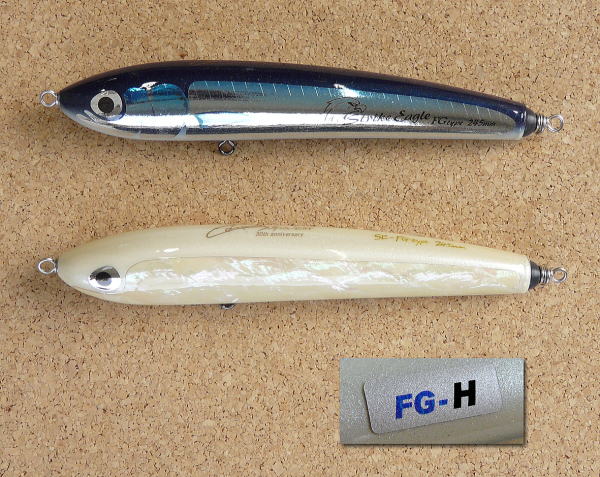 ![]() SE(ストライク・イーグル) 150 (245mm) FGタイプ >ルアー解説 及び 全長・自重・適合フックの詳細 ■ 製作カラーと価格(税抜き) SE150-245mm FG 「N」 ※写真 上から順に ● シイラ「ブルーVer.」 ...メタル貼り ¥13840 ● 30周年記念限定 ブラックアバロン...アワビ(黒)貼り ¥23240 ![]() ■ 製作カラーと価格(税抜き) SE150-245mm FG 「MD」 ※写真 上から順に ● シイラ「ブルーVer.」 ...メタル貼り ¥13840 ● 30周年記念限定 ブラックアバロン...アワビ(黒)貼り ¥23240 ● 30周年記念限定 ホワイトアバロン...アワビ(白)貼り ¥23240 ![]() ■ 製作カラーと価格(税抜き) SE150-245mm FG 「H」 ※写真 上から順に ● シイラ「ブルーVer.」 ...メタル貼り ¥13840 ● 30周年記念限定 ホワイトアバロン...アワビ(白)貼り ¥23240 ![]() ■ 製作カラーと価格(税抜き) SE150-245mm FG 「HH」 ● シイラ「ブルーVer.」 ...メタル貼り ¥13840 ![]() ■ご確認下さい! ※ディアブロカラーは、天然素材から成るウッドボディの個体差により、 発色に多少の違いがございます。 ※メタル貼りは、素材の特性上ウッドボディの状態が再現されますので あらかじめご了承下さい。 ※HPに掲載の写真はすべて、撮影時の環境やご使用のPCモニターなどの関係で、 実際とは異なる色に見える場合がございます。 |